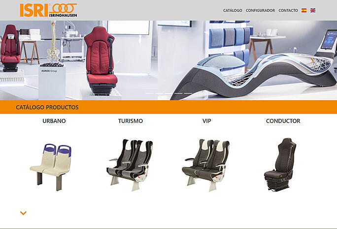Desarrollo de un configurador online 3D interactivo para ISRI, empresa del grupo alemán ISRINGHAUSEN que fabrica en Pamplona asientos para autobuses y vehículos industriales.